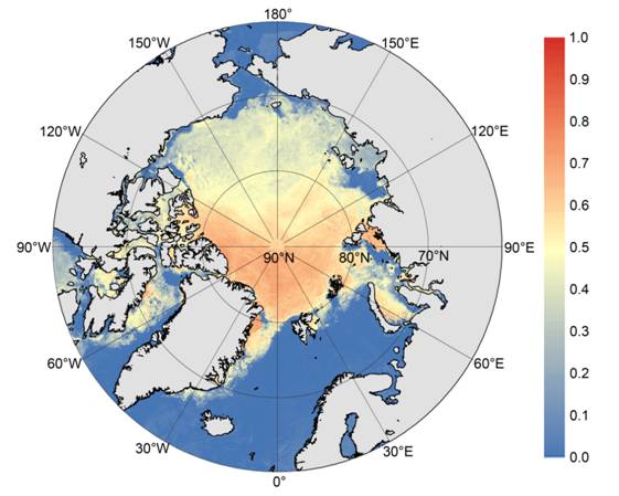地表反照率是一个广泛应用于辐射与能量平衡研究的重要地表特征参量,决定着地球表层与大气之间辐射能量的分配过程。近年来,在全球气候变暖的影响下,北极海冰反照率正在发生着显著变化,因此基于卫星遥感观测数据对北极海冰反照率进行监测具有重要的研究意义。但是目前绝大多数地表反照率产品仅覆盖陆地表面区域,而缺少包含极地海冰和海洋覆盖区域的反照率产品,仅有的几种产品也通常忽略海冰反射的各向异性,空间和时间分辨率也相对较低。