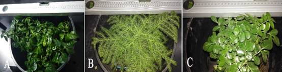 图1、植被与670 nm的测量结果,图中底部为不同植被的反射分布图