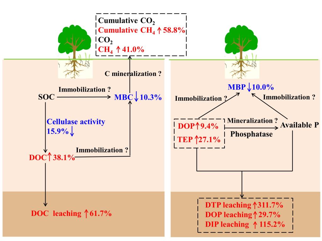 冻融循环在高纬度、高海拔以及一些温带地区是非常普遍的现象,在北半球大约55%的总陆地面积经历着季节性的冻融。近年来,全球气候变化可能会提高冻融循环时间,强度以及频率。这些冻融格局的改变可能会通过影响土壤结构、微生物、植物根系以及凋落物的输入等,影响土壤碳、磷循环。然而,到目前为止,很少有研究探究不同冻融循环格局对土壤碳、磷循环以及碳、氮、磷之间耦合的影响。