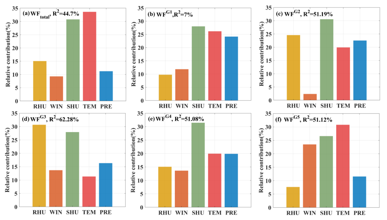 图3. 气候因子对玉米不同生长阶段水足迹的相对重要性