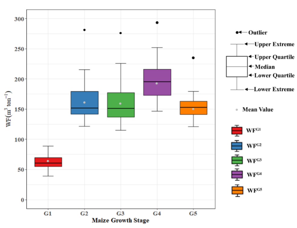 图1. 东北地区雨养玉米不同生长阶段的水足迹