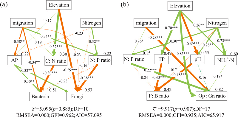 图1 海拔、小叶章上移和氮添加对土壤性质和土壤微生物群落结构的直接和间接影响