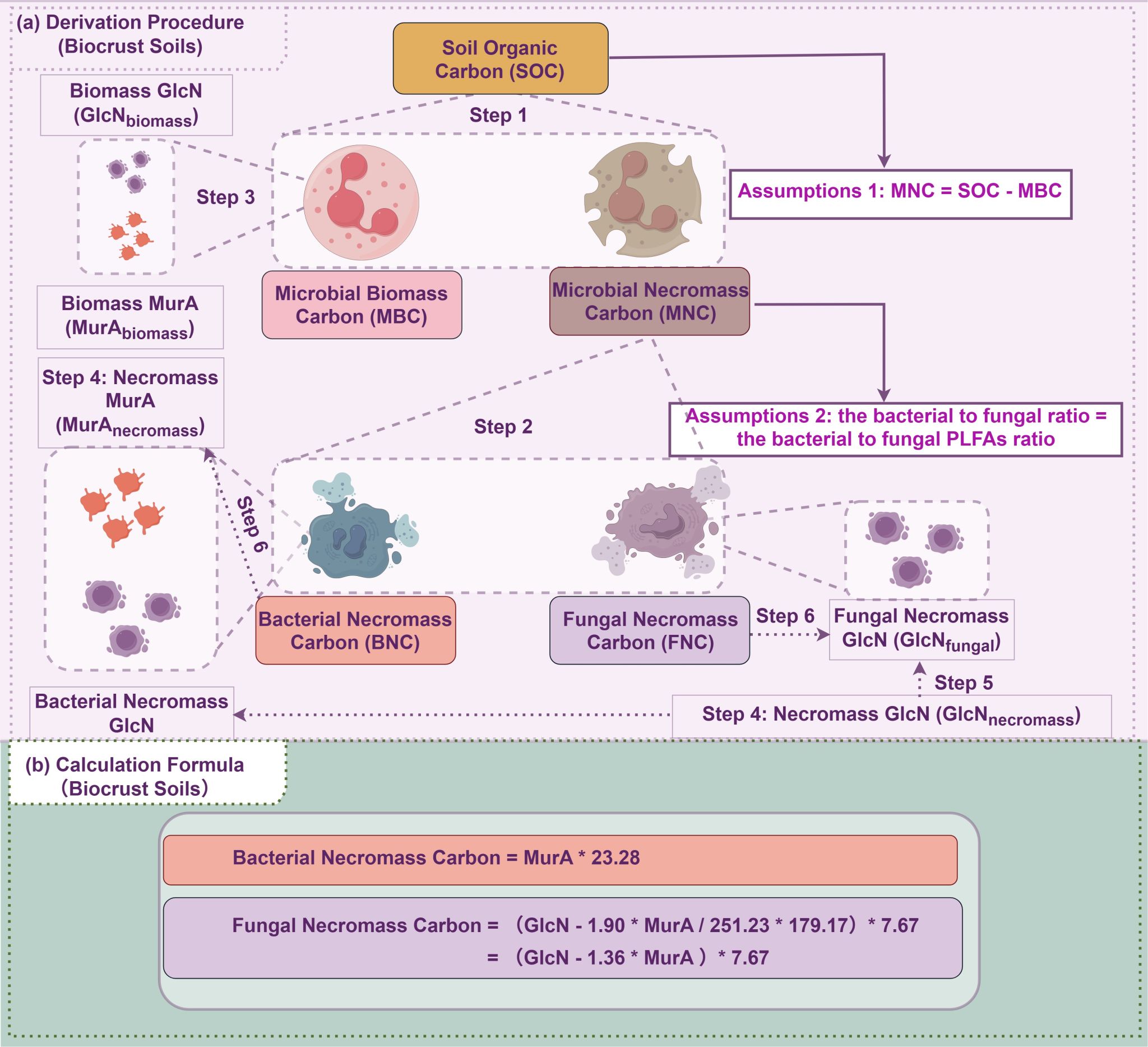 图 1 生物结皮土壤中由氨基糖(AS)推导微生物残体碳(MNC)转换系数的过程