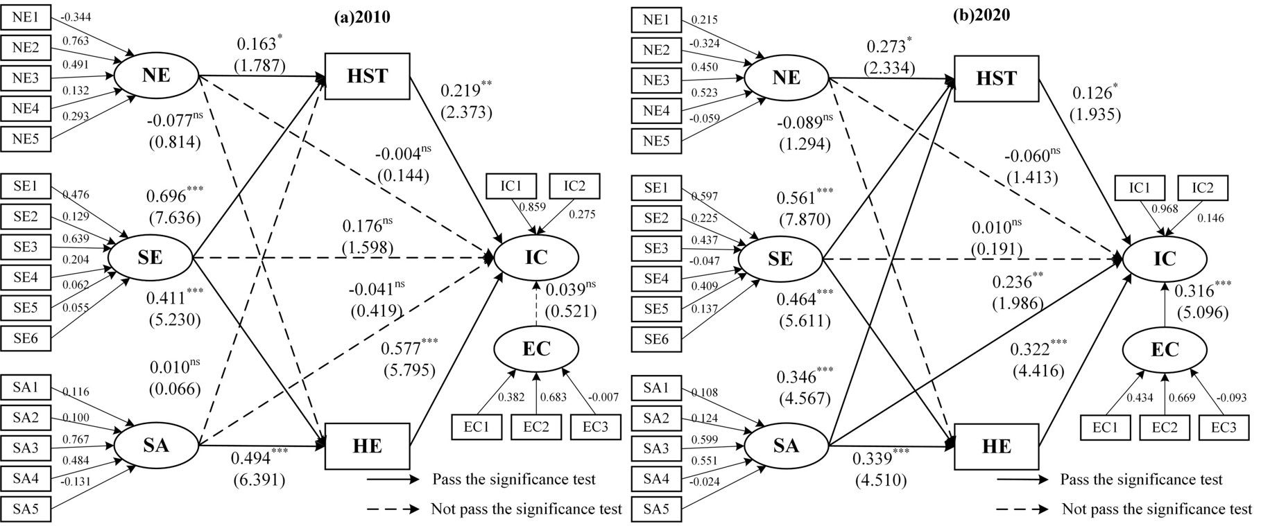 图2 2010年与2020年结构方程模型结果