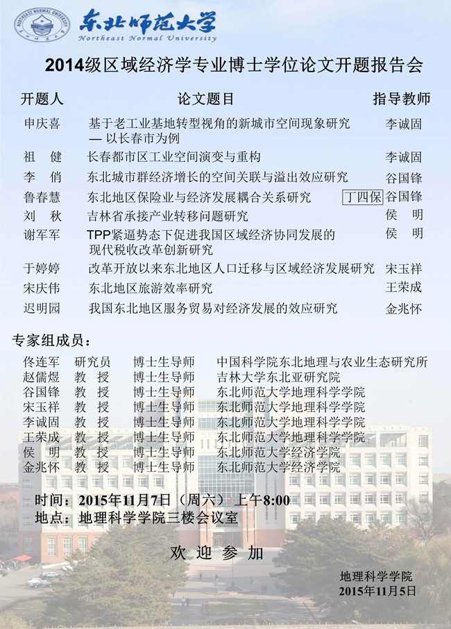 2014级区域经济学专业博士学位论文开题报告会