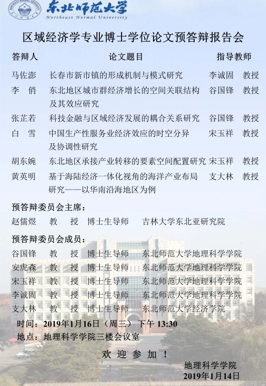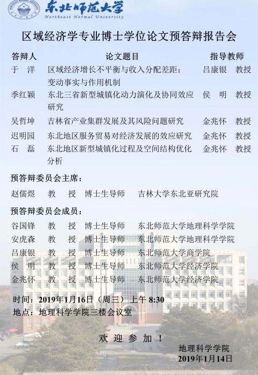 区域经济学专业博士学位论文预答辩报告会
