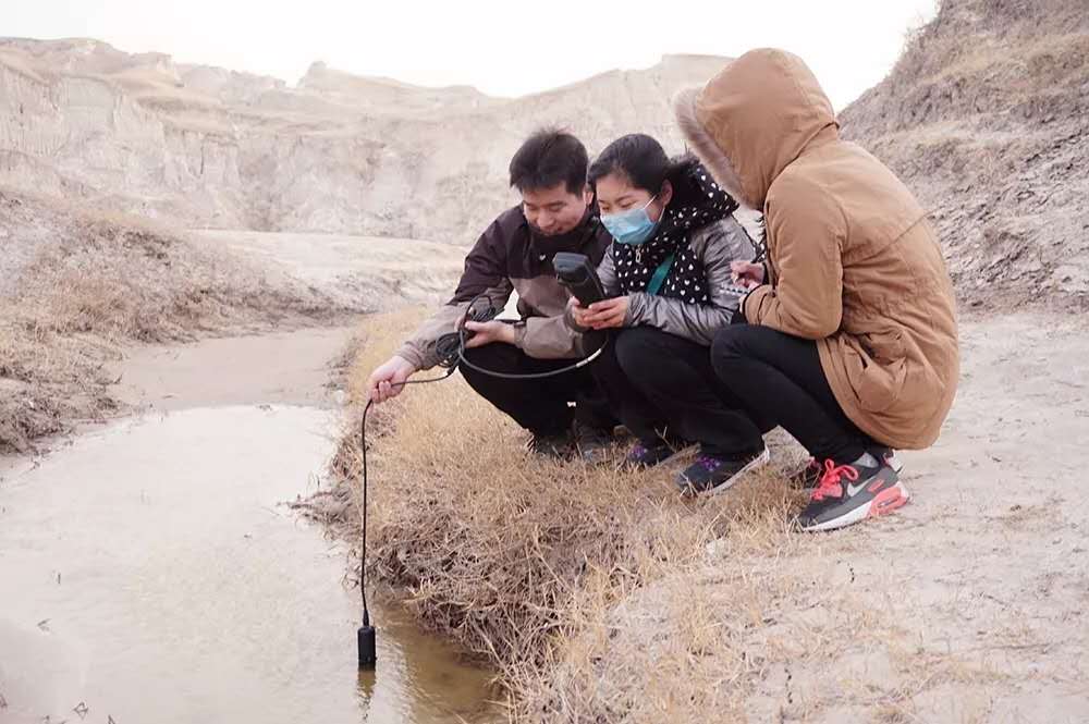 李楠楠与同学监测大布苏湖入湖径流水化学条件