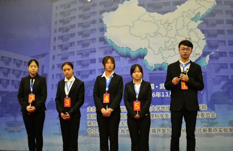 第二届中国高校地理科学展示大赛由中国地理学会和中山大学地理科学与规划学院共同主办,湖北大学资源环境学院承办,湖北省地理学会和区域开发与环境响应湖北省重点实验室协办。本次大赛以“我身边的地理学”为主题,分为人文组和自然组进行比赛。本次比赛初赛共有来自全国高校的100余支队伍参与,并选拔出40支决赛队伍、260余名参赛选手参加了大赛开幕式,全国10余所高校近百人前来观摩学习。本次大赛分为“展示”和“答辩”两个环节,各参赛队选择与大赛主题有关的选题进行展示和答辩。来自中国地理学会及南京大学、中山大学等高校的多名专家评委根据团队的精神风貌、团队配合、选题的科学性、创新性和答辩环节进行评分,在自然组和人文组分别评选出一等奖一名,二等奖两名,三等奖三名及优胜奖十四名。