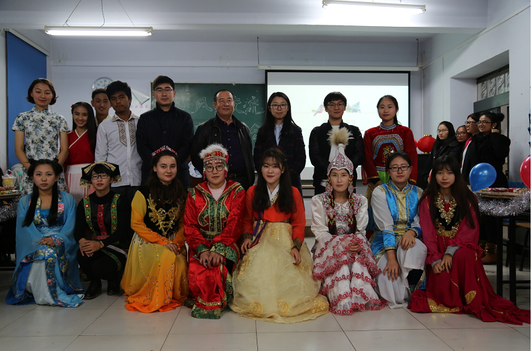 下午6点钟,才艺展示会正式开始。首先由各个不同民族同学穿着自己的民族服饰进行风采展示,现场欢呼声不断。风采展示过后,各民族的同学代表接受主持人采访,向观众们介绍了自己的民族特色和民族文化。接着少数民族以及汉族同学们给大家带来了精彩的歌舞表演,他们悠扬悦耳的歌声和唯美动人的舞蹈将活动推至了高潮。同时,主持人还在节目表演的间隔中穿插了趣味横生的小游戏以及抽奖环节,现场一片欢声笑语。在活动尾声,张婧宁老师以及帕老师分别进行了总结发言。最后由嘉宾评出了本次才艺展示会的两位风采之星,获奖演员均获得了精美的礼品。