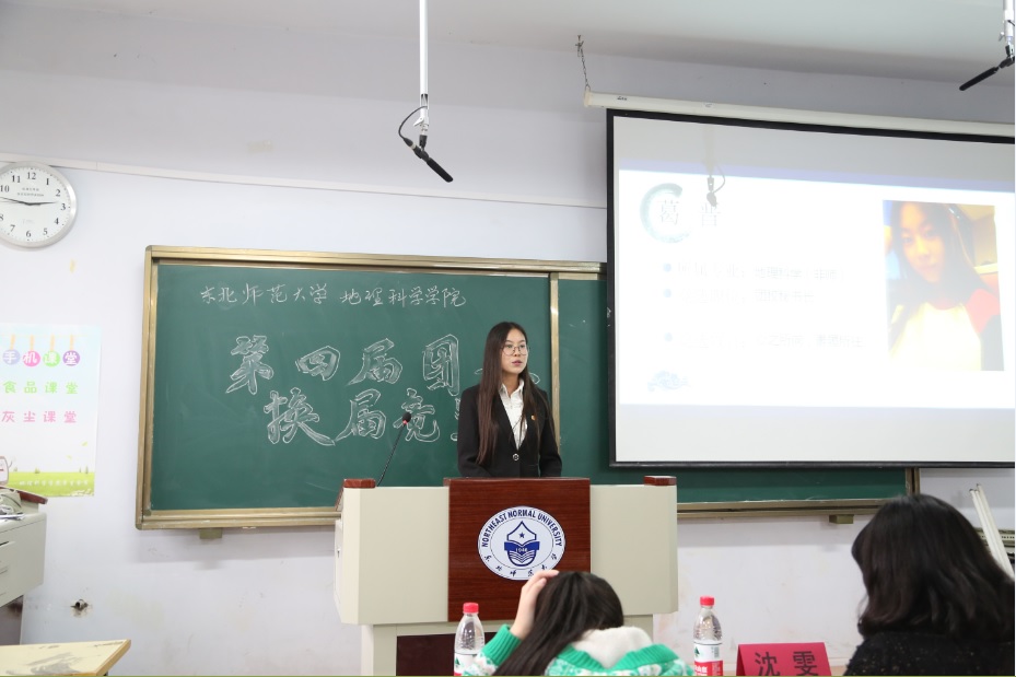 下午两点,第四届团委换届竞选会正式开始。首先主持人做开场白,并介绍到场嘉宾。接着主持人介绍本次竞选流程。本次竞选分为竞选演说与现场问答两部分。在竞选演说环节,候选人按副书记候选人、部长候选人、副部长候选人的顺序依次上台演讲;在现场问答环节,候选人现场抽取题目并作答。各位候选人精彩的演讲和出色的应变能力,赢得了评委老师们的赞许和同学们的阵阵掌声。随着最后一位候选人的演讲完毕,本次竞选会圆满落幕。