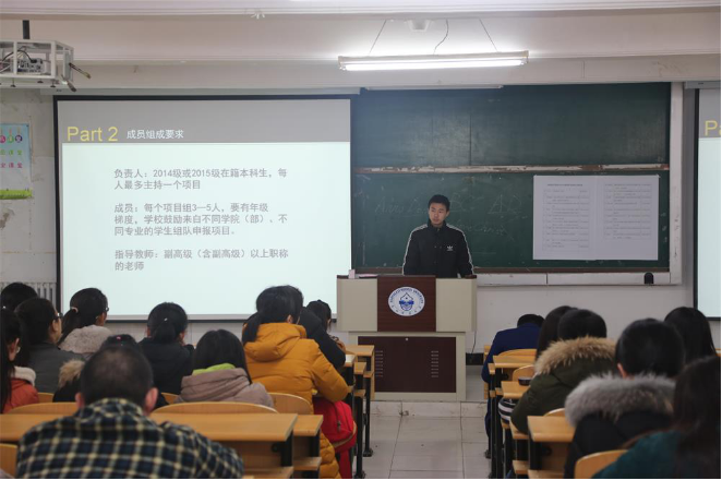 为了进一步激发学生的科研兴趣,加强同学们对科研的认识,提升学生撰写科研项目申报书的水平,永利集团304学生会科研部于2016年3月10日中午12:00在地理大教室开展了历时半小时的科研、国创宣讲会。出席本次活动的成员有学生会主席刘旭学长和学生会科研部部长熊志飞学长。