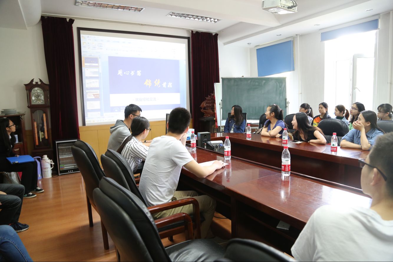 中午12点,座谈会准时开始。首先由明嘉慧学姐、葛志远学长和赵祥学长分别为我们介绍了他们各不一样的找工作经历。他们结合自己的实际经历,从前期的信息查询、资料准备到接下来的笔试和面试给大家做了详尽的讲解,还根据师范专业和非师范专业的不同特点提出了不同的建议。在整个座谈会过程中,同学们听得十分认真。在最后的互动答疑环节,同学们针对如何选择实习地点、非师范专业如何选择工作等问题向学长学姐们进行了咨询,学长学姐们都耐心解答,气氛非常活跃。