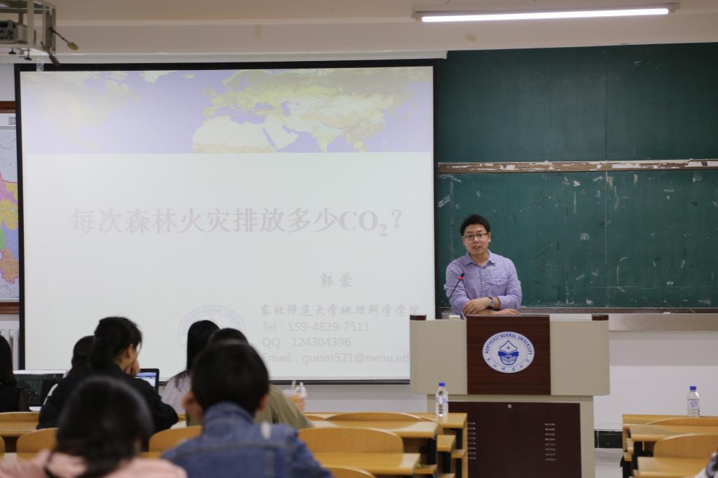 郭蒙老师以“每次森林火灾释放多少CO2”为主题,将内容分为森林火灾与碳平衡以及森林火灾CO2排放量计算两部分。首先,老师向同学们介绍了森林干扰的必要性,给同学们带来启发,使同学们认识了一种使用计划火烧来平衡碳排放的方法。接下来,老师介绍了森林火灾CO2排放量的计算公式以及测量森林火灾CO2浓度的前沿技术。最后老师用自己的科研成果举例,鼓励同学们在平时的生活、学习中多看,多思考,激起了同学们浓厚的兴趣。