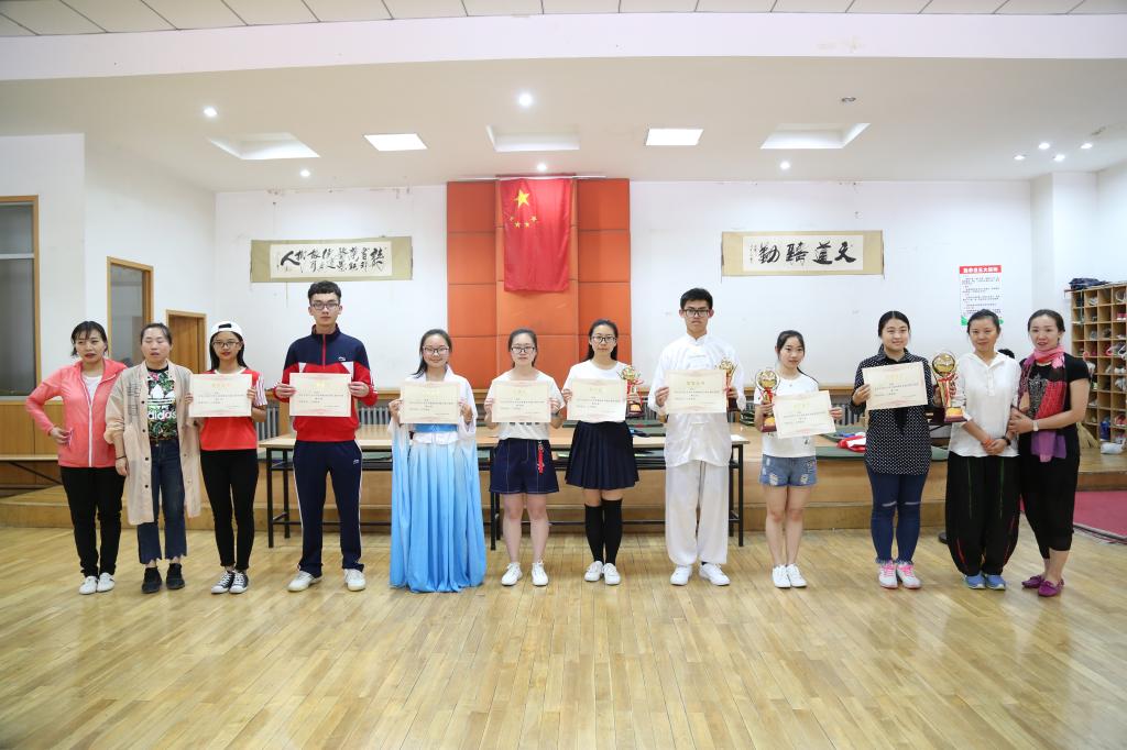 比赛正式开始,同学们迈着统一的步伐进入场馆。站好之后,大家一起向裁判老师敬礼。接着,悠扬舒缓的音乐响起,选手们打起了太极拳。大家身体中正,动作虚实分明,刚柔并济。然后是一套单人表演的优美刚劲的太极剑,一招一式如行云流水,快慢衔接得十分完美。最后是大家一起表演的擒敌拳,一勾拳一摆腿都迸发着气势与力量。本次比赛永利集团304最终获得了第八名的好成绩。比赛结束后,获奖学院与老师们合影,比赛圆满落下了帷幕。