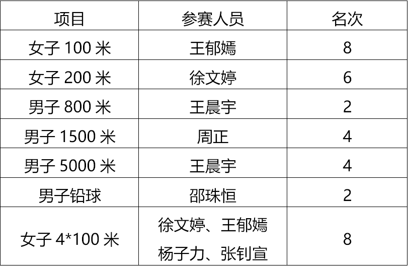 6月1日,我院参加了本届运动会田径项目的预决赛。比赛项目包括男子100米和女子100米预赛、男子800米和女子800米决赛、男子200米和女子200米预赛、男子4×100米和女子4×100米预赛、女子3000米决赛、男子400米和女子400米预赛、男子5000米决赛,以及同时进行的男子跳高、男子铅球、女子跳远和女子铅球的比赛。地科学子不惧酷暑,在激烈紧张的赛场上尽情挥洒汗水,并取得了优秀的名次。